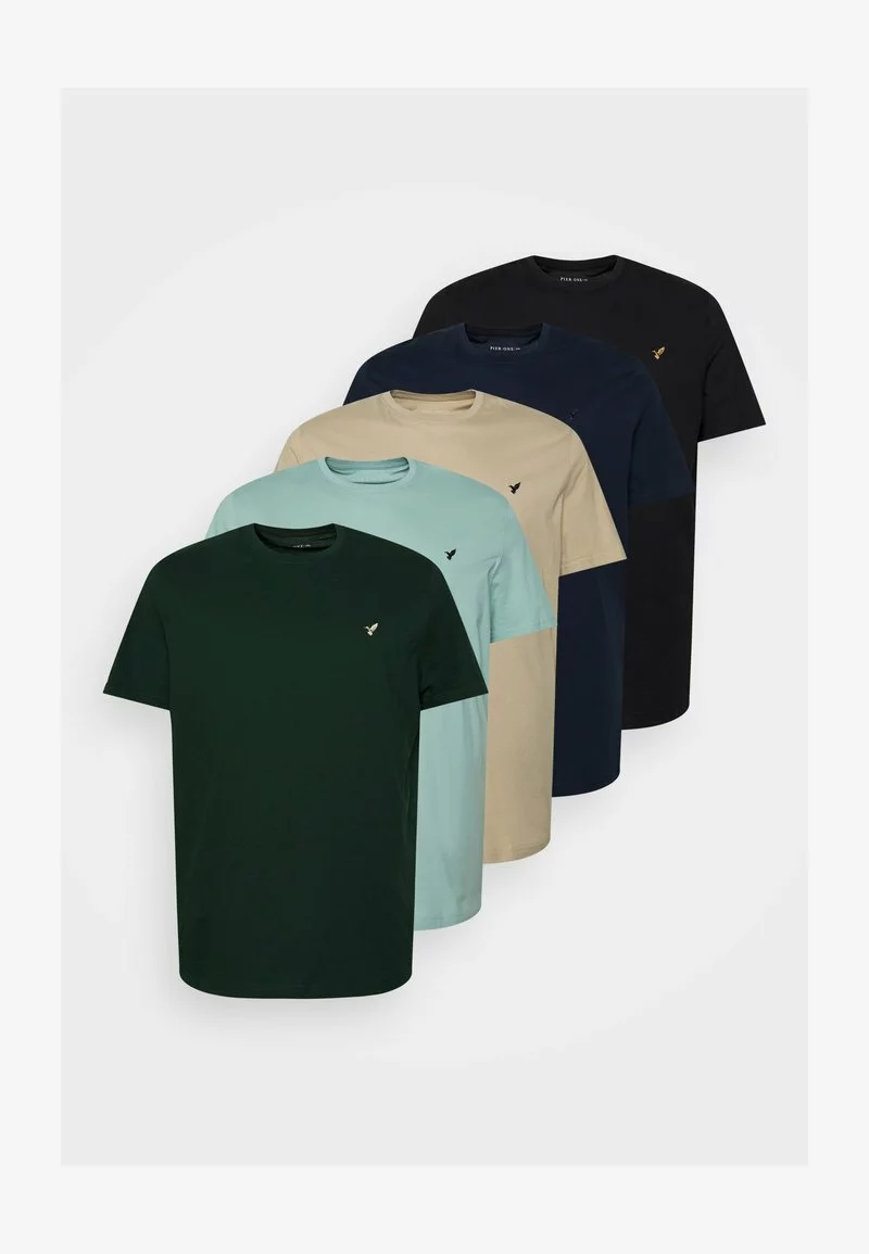 Pier One 5 PACK – T-Shirt Basic – Dark Green/beige/light Blue